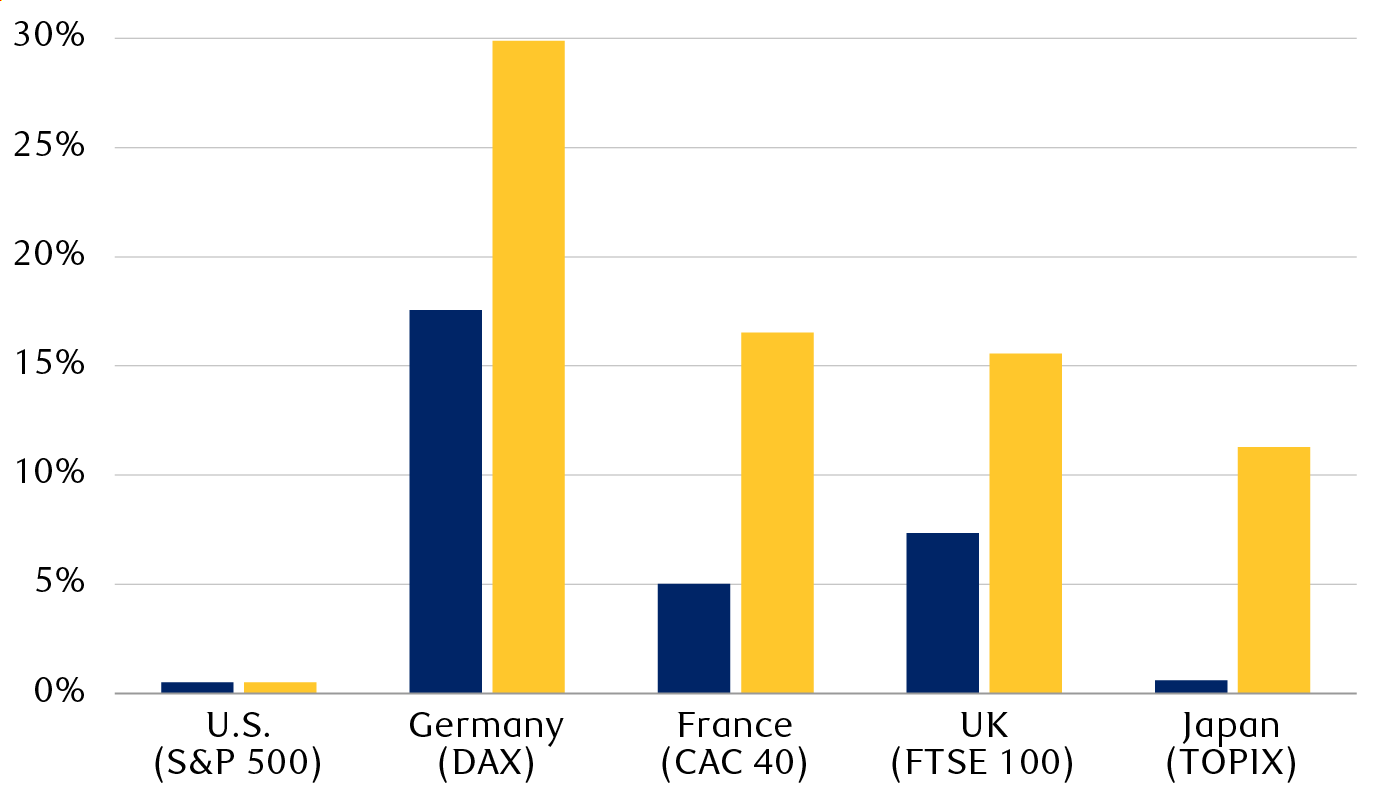 The tariff storm shook the governments of several of the U.S.’s trading partners out of their policy complacency. Many countries turned to their fiscal stimulus playbook, further helping sentiment toward international stocks. Germany, in particular, abandoned its long-held fiscal deficit limit to invest heavily in defense and infrastructure.
